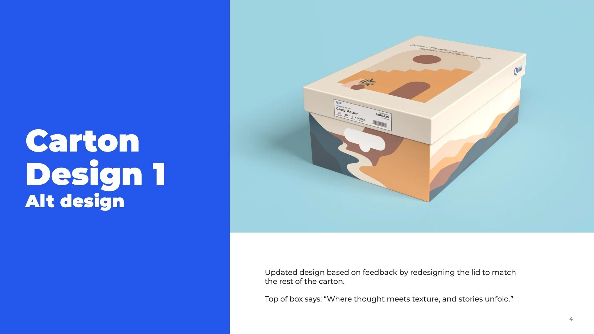 This project explores how thoughtful design can transform disposable packaging into a reusable object. The cartons seamlessly transition into storage solutions, promoting recycling through reuse and elevating an often-overlooked everyday product.